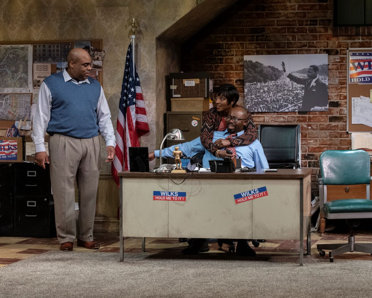 Everyman Theatre's 2019 Production of Radio Golf. Jason B. Mcintosh (Roosevelt Hicks), Dawn Ursula (Mame Wilks), and Jamil A.C. Mangan (Harmond Wilkes). Photo by Teresa Castracane Photography.