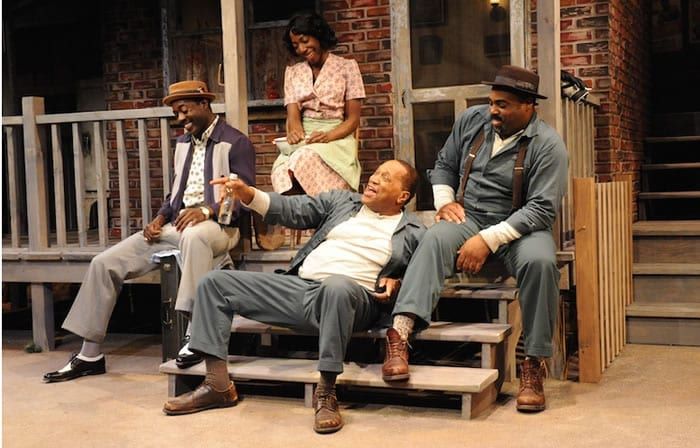 Everyman Theatre's 2015 production of Fences. Gary-Kayi Fletcher (Lyons), Joy Jones (Rose), Jason B. Mcintosh (Bono), and Akan Bomar Jones (Troy). Photo courtesy of Stan Bourouh.