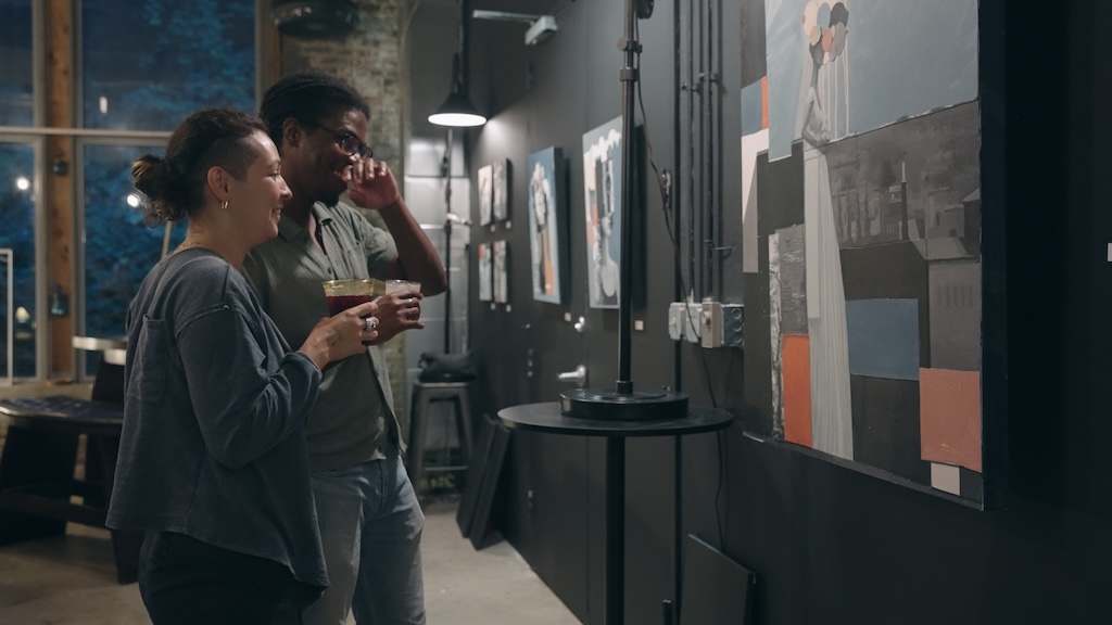 There, he explored the techniques of alla prima painting and drawing figures, portraits, and landscapes. He later shifted to narrative themes, using collage as a way to iterate quickly. The traditional approaches of working directly from life, married with modernist techniques of experimentation and subjective experience, were key factors in Bynum’s artistic development.