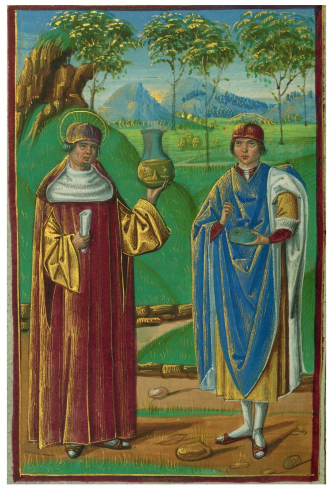 Of course, medieval folks seeking cures often also turned to prayer and meditation, much as many people might do today. The examples in this show are predominantly Christian, but they point to a broad range of health-related practices and strategies rooted in faith. A lovely manuscript pairs a painting of Saint Anne, who was often associated with fertility, with a written prayer that could be voiced in the hope of ensuring a successful pregnancy. And a tiny plaque likely carried by a pilgrim to a shrine in roughly 600 depicts a pair of eyes and carries the inscription ‘Lord, help.’ When a visit to the ophthalmologist doesn’t work, an appeal to divine aid is always an option.