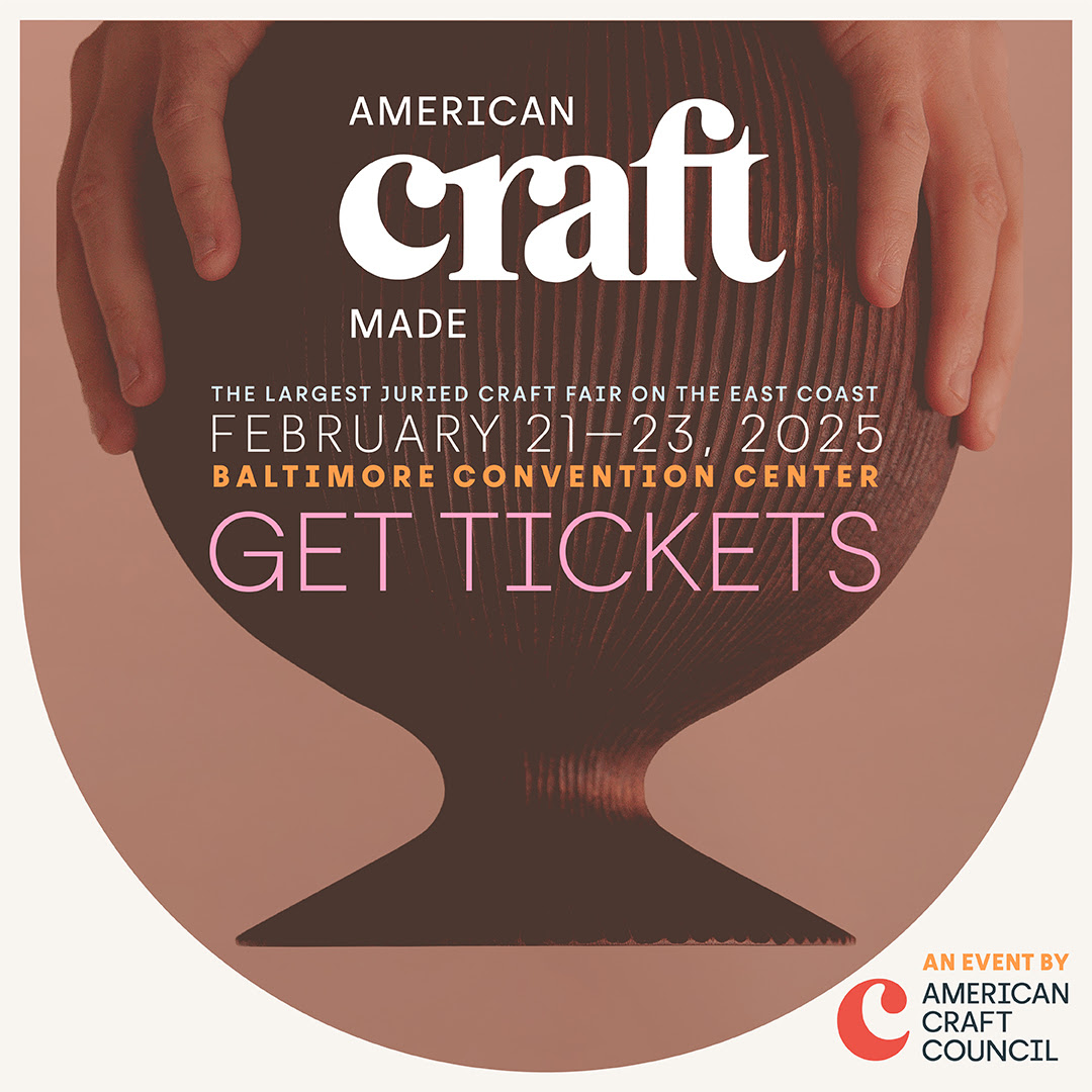 The American Craft Council’s (ACC) flagship event, American Craft Made Baltimore, will return to the Baltimore Convention Center February 21–23, 2025. This annual, immersive event showcases nearly 400 accomplished artists and makers, attracting more than 10,000 dedicated craft appreciators, collectors, and members of the craft curious. Visitors can shop work by artists from around the country, participate in hands-on activities, view craft demonstrations, attend related events and parties, and much more.