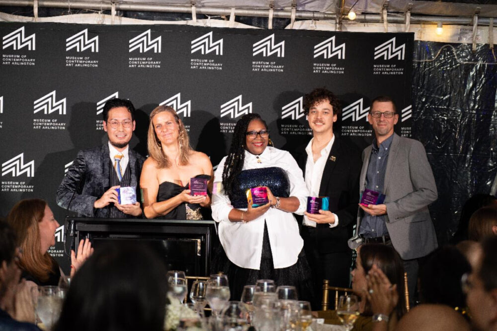 2025 SOLOS Artist Awardees (l to r) Kei Ito, Christina Lorena Weisner, Kelli Williams, Joshua Challen Ice, and Brandon Morse were honored at MoCA Arlington's 50th Anniversary Gala Celebration.