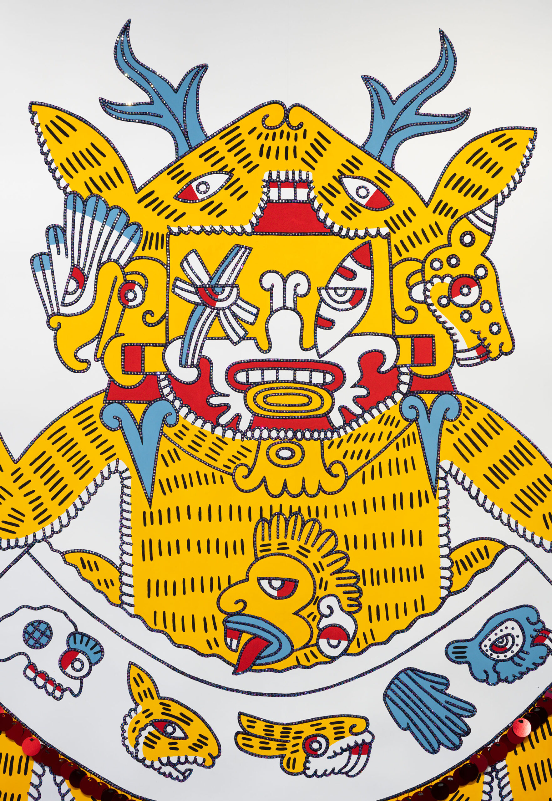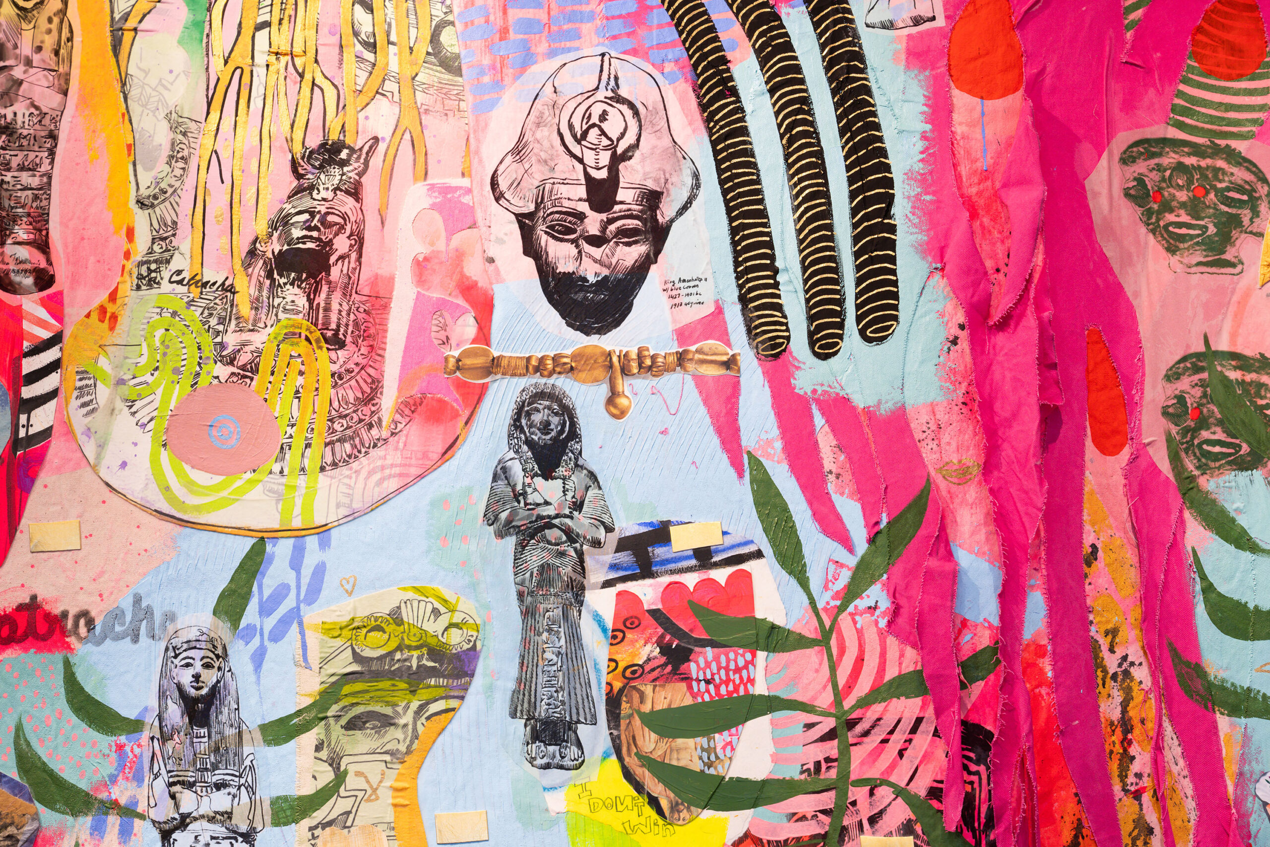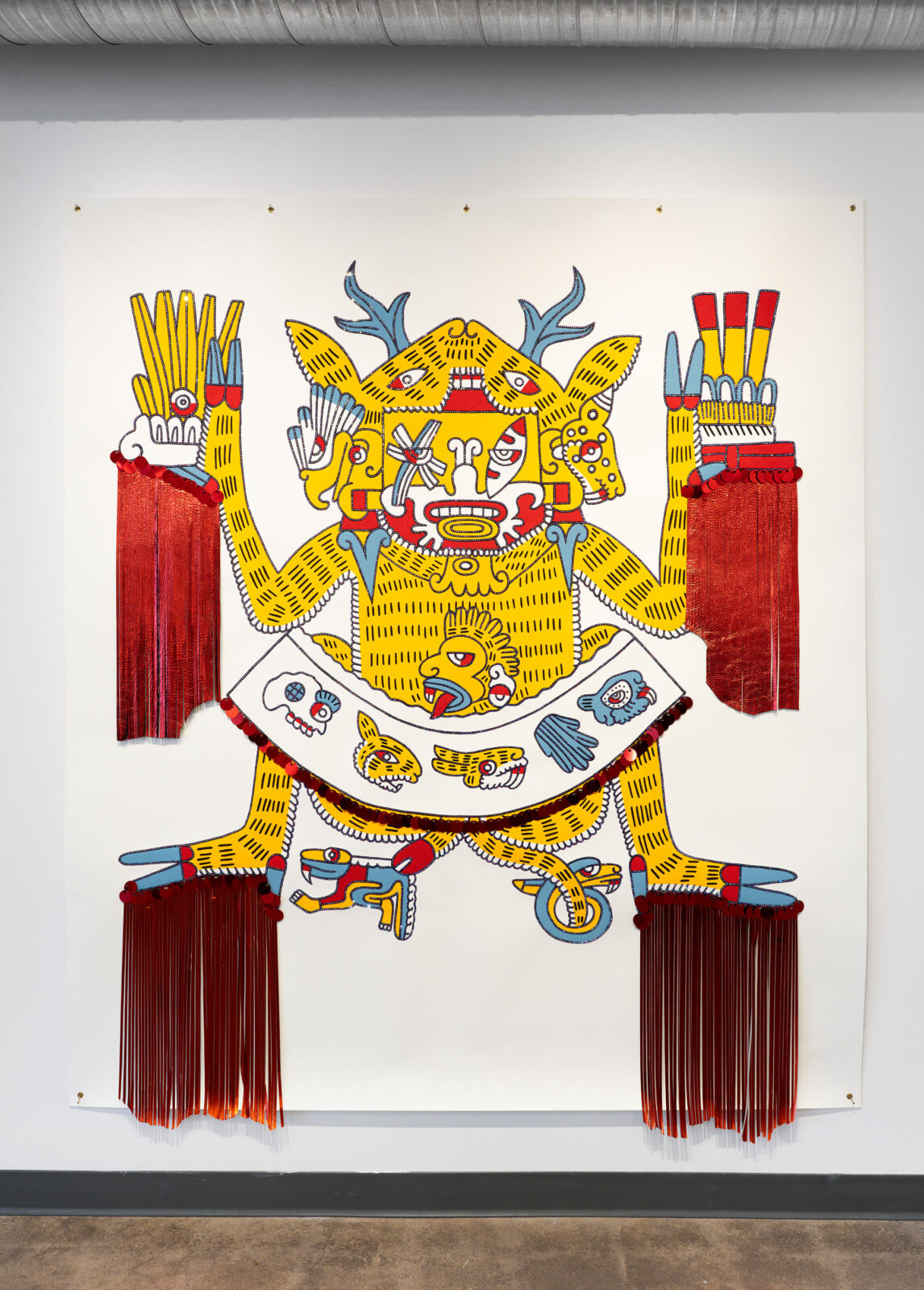 At the intersection of cultural history, displacement, and personal identity, City of Artists III highlights the evocative works of three remarkable artists: René Treviño, Jackie Milad, and Edgar Reyes. Trevino’s multidisciplinary practice merges Maya and Aztec history with contemporary influences through his sculptural works. Milad’s mixed-media paintings and collages explore her Honduran and Egyptian heritage, delving into dispersed cultural histories. Reyes, through his multimedia art, addresses the adversities faced by his undocumented community and the blending of Indigenous and European traditions.
