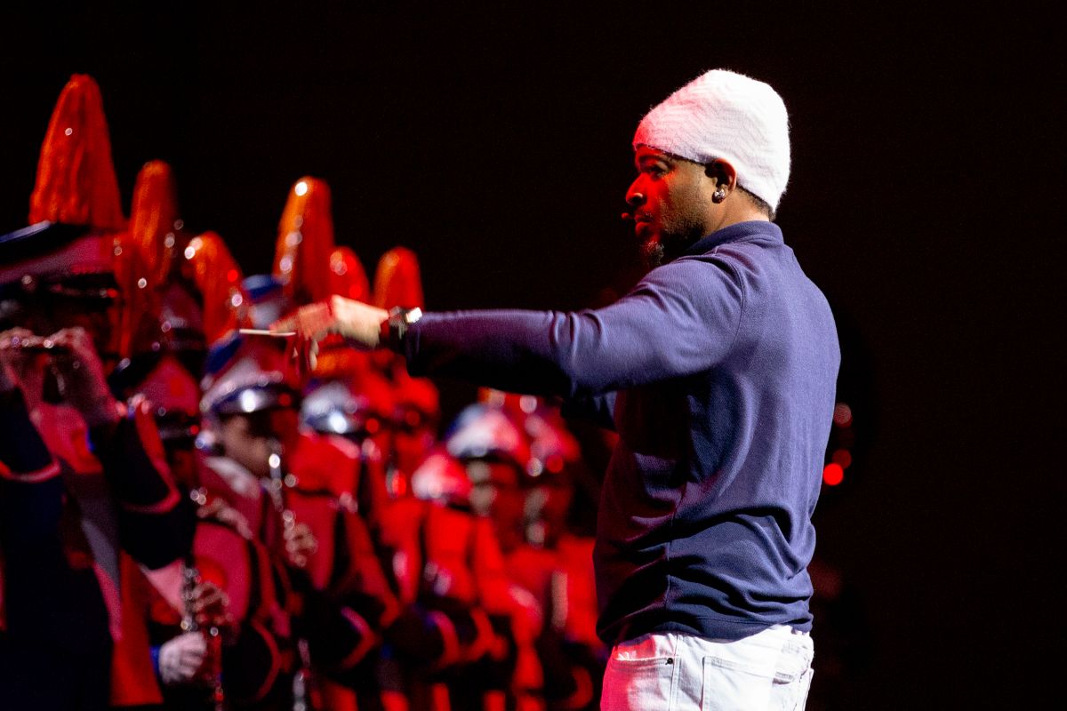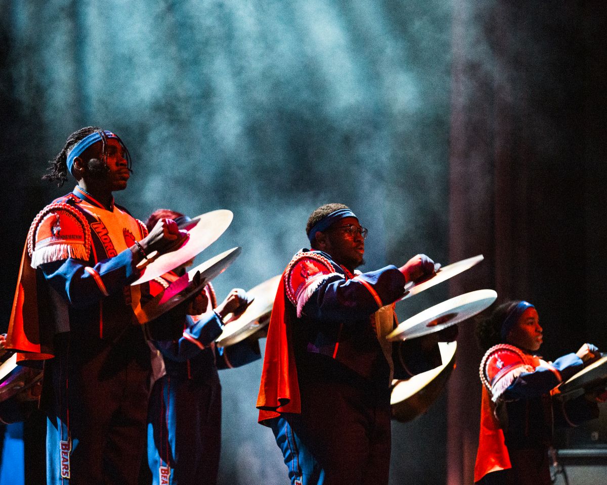 On a break, I learned that the three students under the spotlight were Dante Travis, Justin Smith, and Tory James, the band’s drum majors. Contrary to the name, drum majors are not required to be percussionists, as they can come from any section of the band. Shawn McNeill, a Graduate Assistant for the band program, elaborated that “the drum major is the leader of a marching band, serving as a conductor, communicator, and representative of the ensemble. They set the tempo, conduct performances, and ensure alignment between sections during rehearsals and shows.”