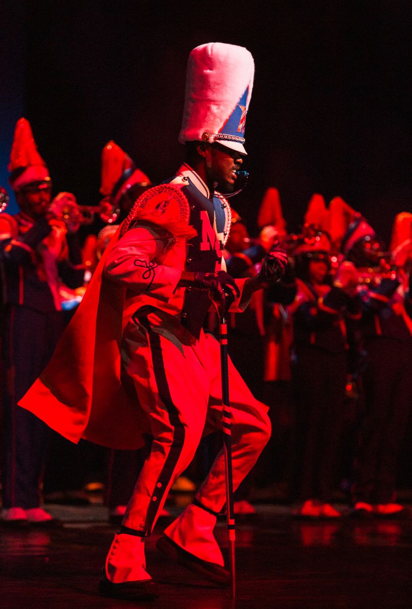 Before heading back into the theater, McNeill introduced me to a few members of the marching band. Terrell Madison is a senior majoring in Social Work, and besides being a tuba player, he’s also the president of the Eta Gamma Chapter of Kappa Kappa Psi National Honorary Band Fraternity.