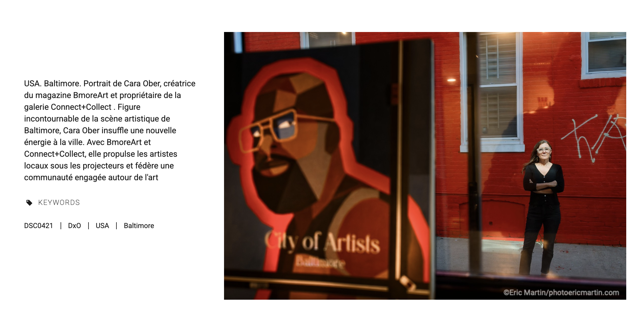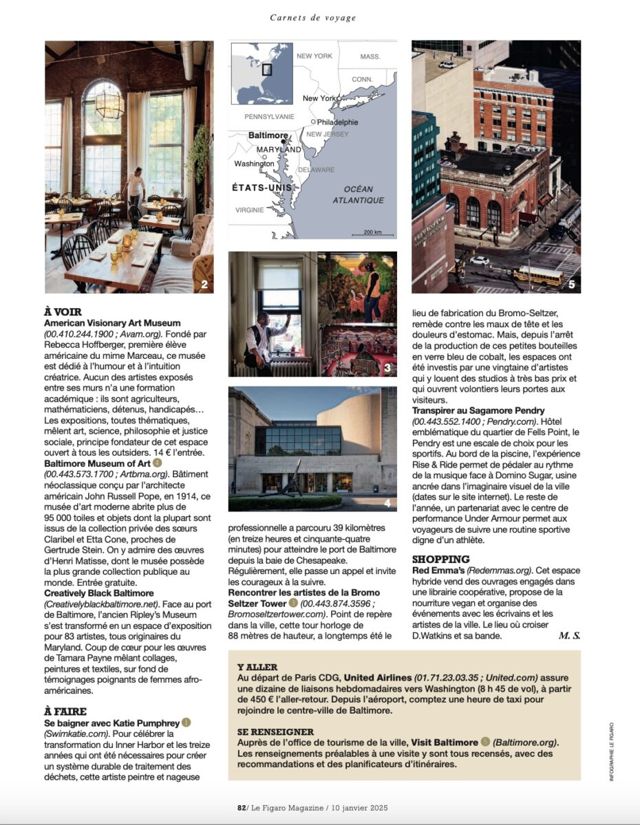 I have lived in Baltimore for twenty-five years, after growing up in rural Maryland, and I love this weird-ass beautiful city. Every single day, I work to champion the excellent creative people and projects that exist here with a dedicated team at BmoreArt.com. When other publications reach out, such as Le Figaro, through writer Marine Sanclemente and photographer Eric Martin, I will always say yes if given the opportunity to talk about Baltimore’s art and culture – because it’s deserving and the world should know it.