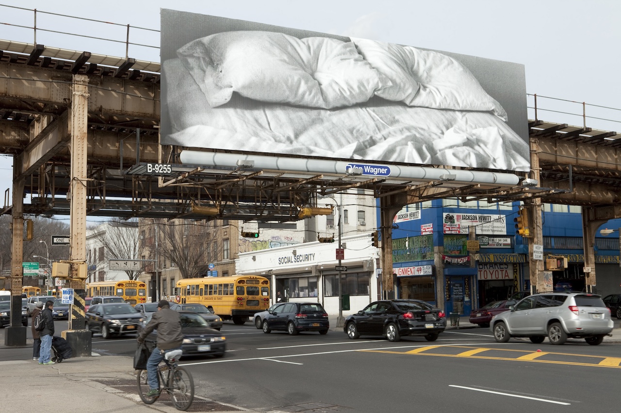 In the midst of this sharp cacophony, a series of billboards designed by Felix Gonzales-Torres and erected throughout New York City used a different strategy. Featuring photographs of rumpled, uninhabited beds, they hinted at intimacy while also evoking absence and disappearance. Pairs of dimpled pillows suggested the possibility of same-sex love, even as the quiet, unpeopled scene spoke of the ghastly consequences of President Reagan’s policies.