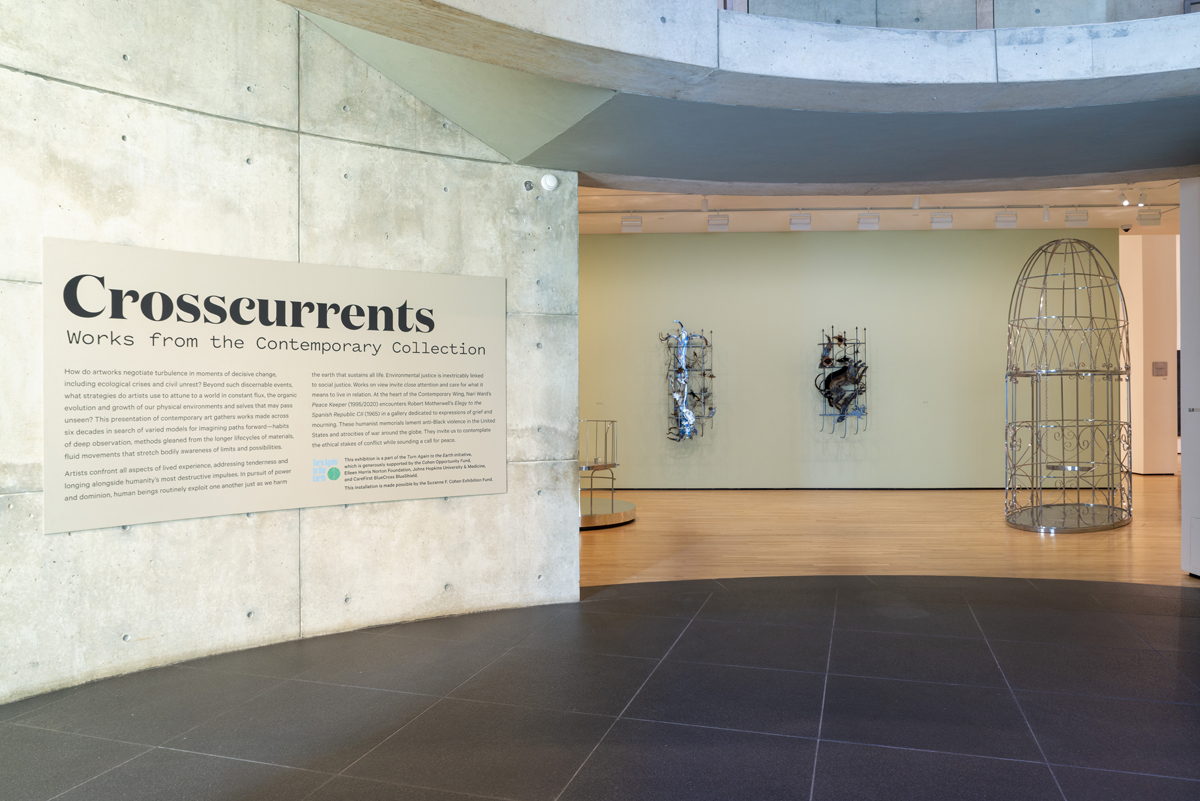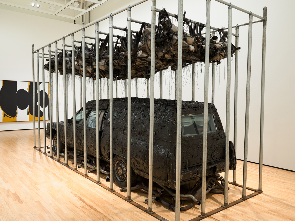 The installation triggers images of charred vehicles on the margins of urban riots and civil strife, signifying the breakdown of justice in the midst of oppression. “I wanted ‘Peace Keeper’ to be a kind of generative battery, to give energy to ideas about trauma and change,” Ward has said. In the context of the museum’s Turn Again to the Earth initiative, “Peace Keeper,” heavy with fossil-fuel iconography, is perhaps best understood as a fitting memorial for the hoped-for end of the hydrocarbon era, or as a funeral for everything the hydrocarbon era will take with it.