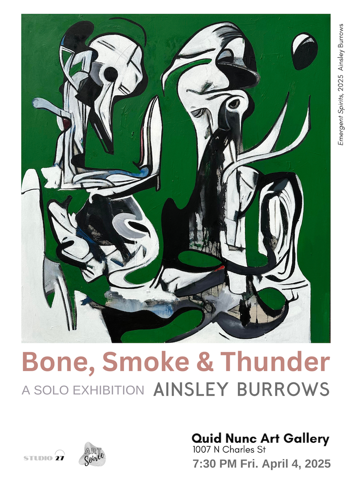 Atrium Artspace is a gallery space nestled between Old Goucher and Station North that occupies the first floor of a restored 1881 rowhouse. Michel Heitstuman and Matt Moses, Co-Directors of Atrium Artspace, meticulously reimagined, restored, and redesigned the historic residence between 2022 and 2024, transforming it into an evocative and sophisticated space for the exhibition of fine art. Atrium Artspace is devoted to enriching Baltimore’s artistic and cultural landscape by championing and providing a platform for emerging artists based in Baltimore City.