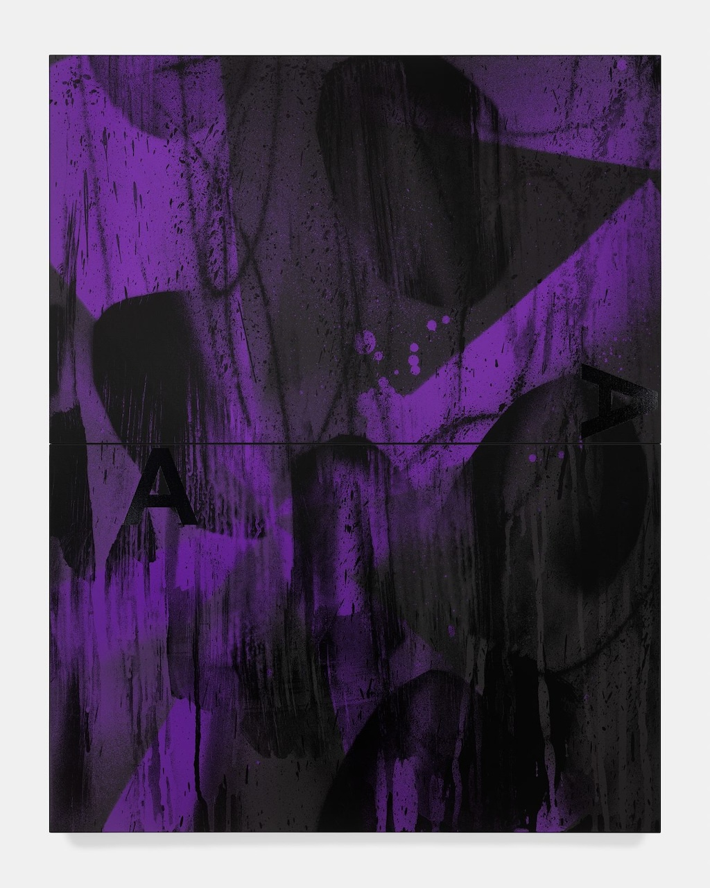 Adam Pendleton, Black Dada (A/A), 2024. Silkscreen ink and black gesso on canvas, two parts. © Adam Pendleton. Photo: Andy Romer