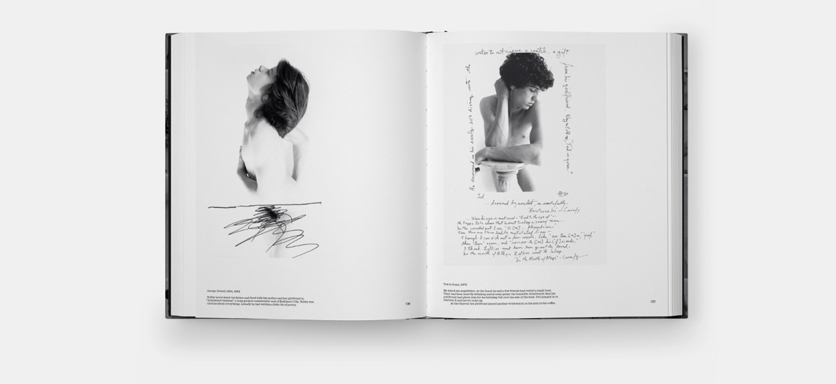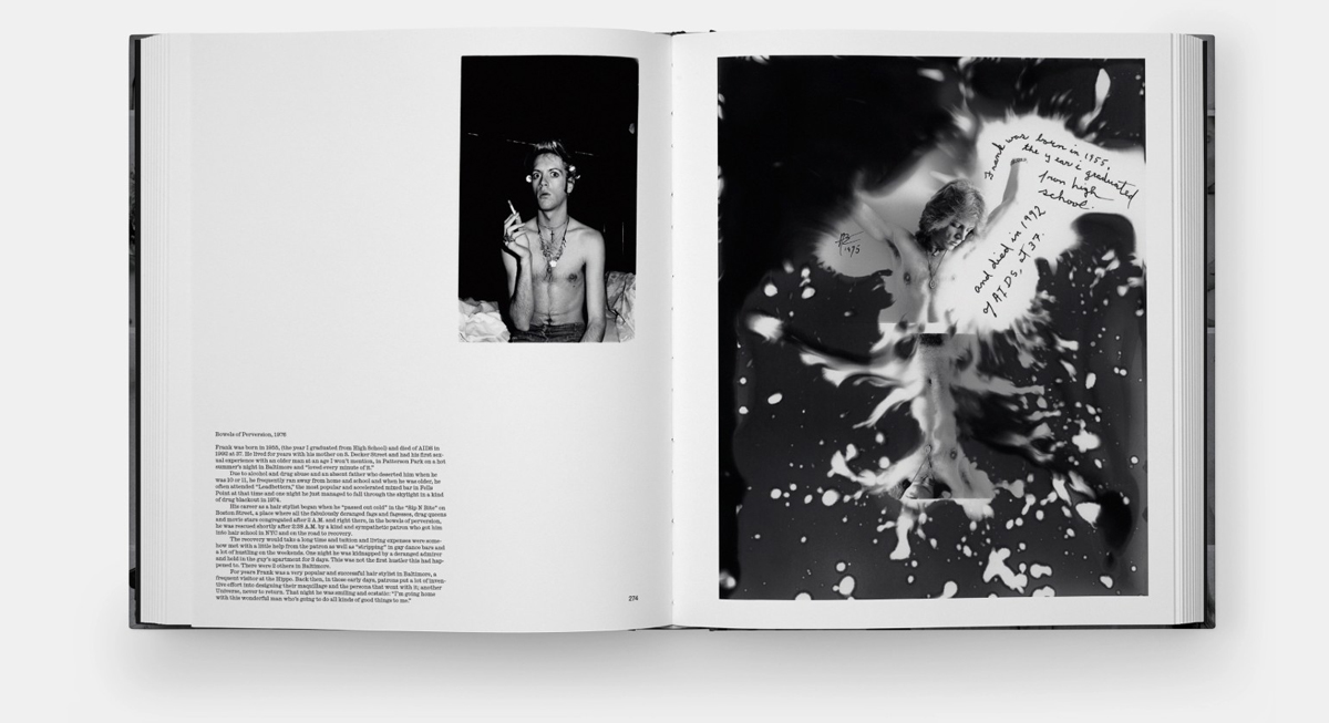 That’s about to change. This month, the esteemed international art publisher Phaidon ships Amos Badertscher: Images and Stories, a long-overdue 334 page monograph containing a treasure trove of Badertscher’s intimate photos and recollections from the late 1950s through early 2000s. Many of those are scans of images Badertscher revisited and reprinted decades after originally shooting them—marking them up with his confessional annotations in the margins—relating years of sexual desires, transactional relationships, and matter-of-fact documentation of the seedy underbelly of a Baltimore that’s been long-ago waxed smooth.