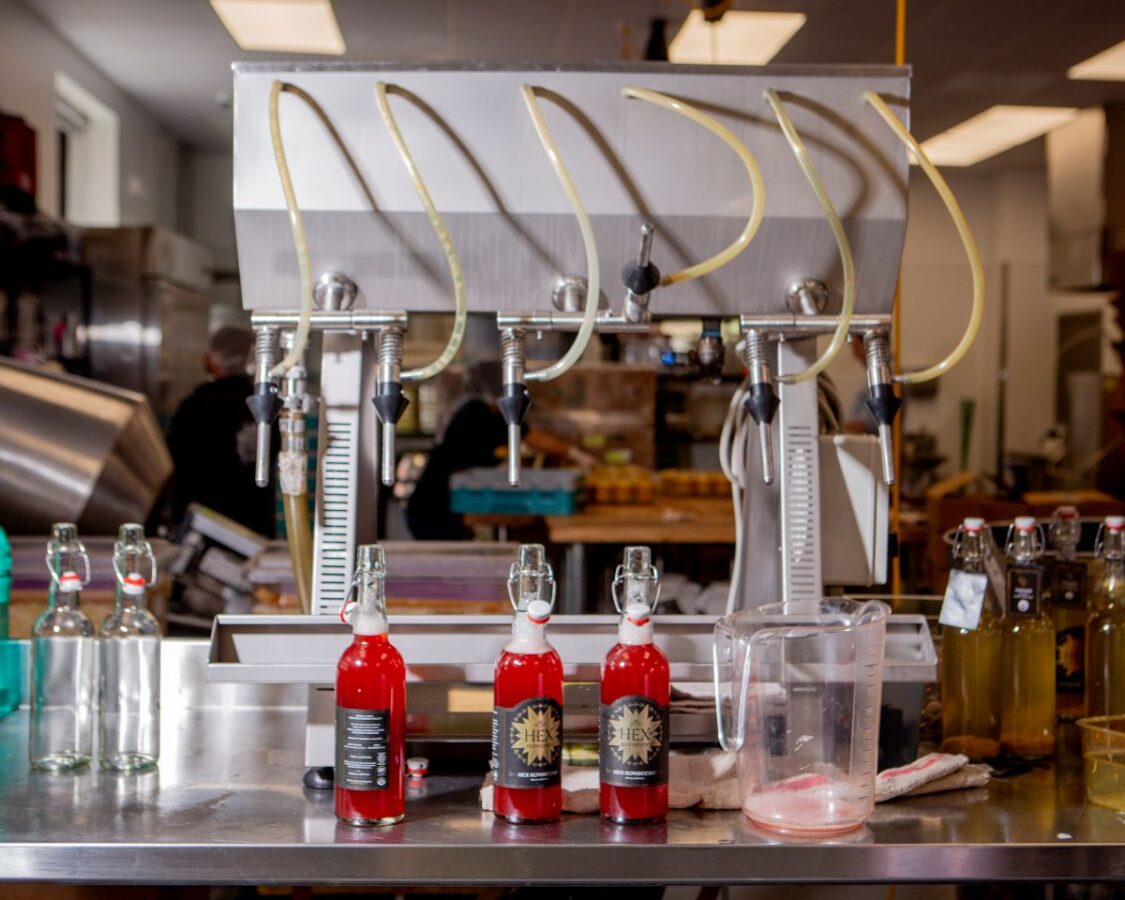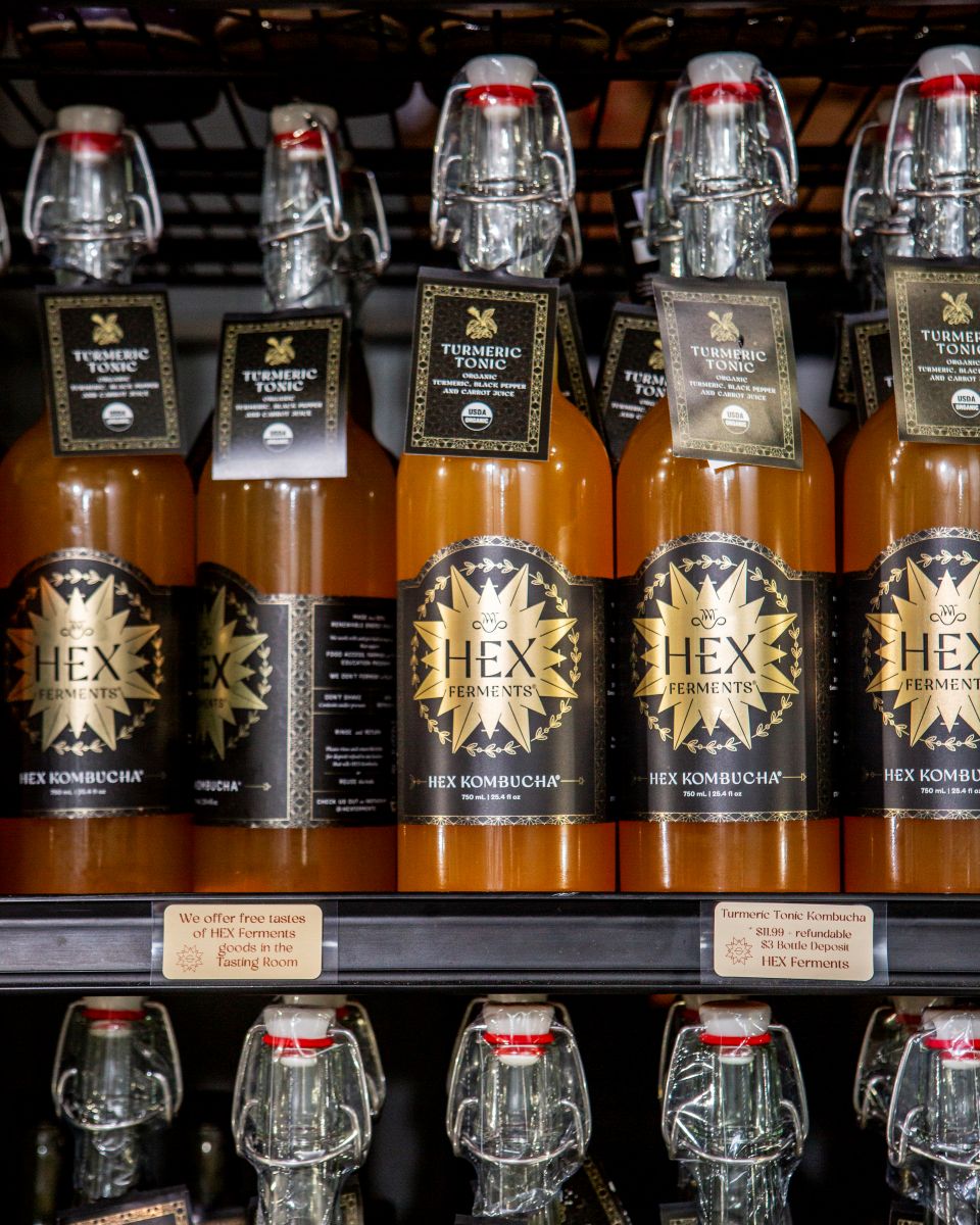 Hex Ferments co-owners (and husband and wife team), Meaghan and Shane Carpenter met Katz while nurturing their home fermenting practice in 2012. He encouraged the couple to join a workshop at his home in Tennessee. “We came down and spent four amazing days in a dusty, slightly moldy, funky basement of a house with 15 other complete strangers—learning about everything from sauerkraut to tempehs and yogurts and misos and beyond. It was fabulous. We left, and I was like, something’s changing. And then our home fermentation practice just exploded. Not literally, well, sometimes literally,” Meaghan says, laughing.