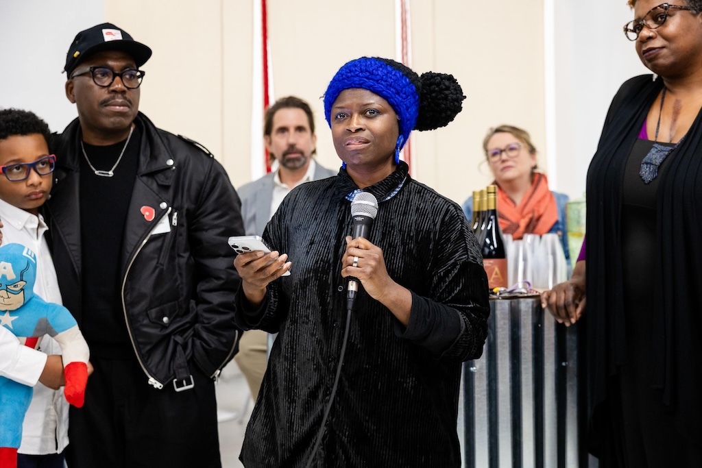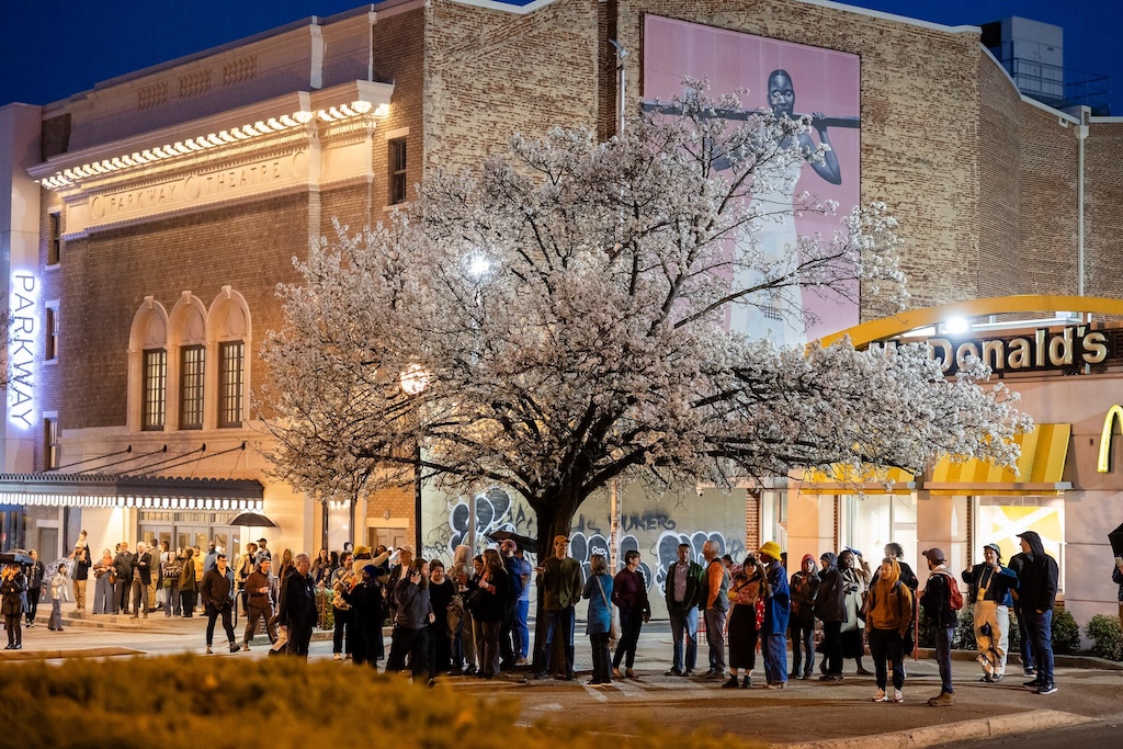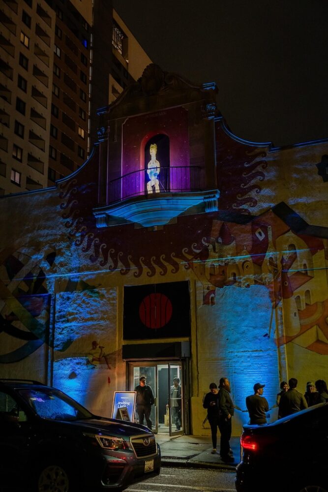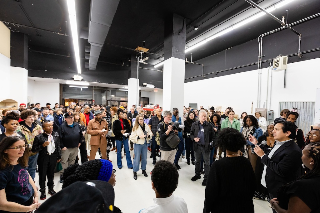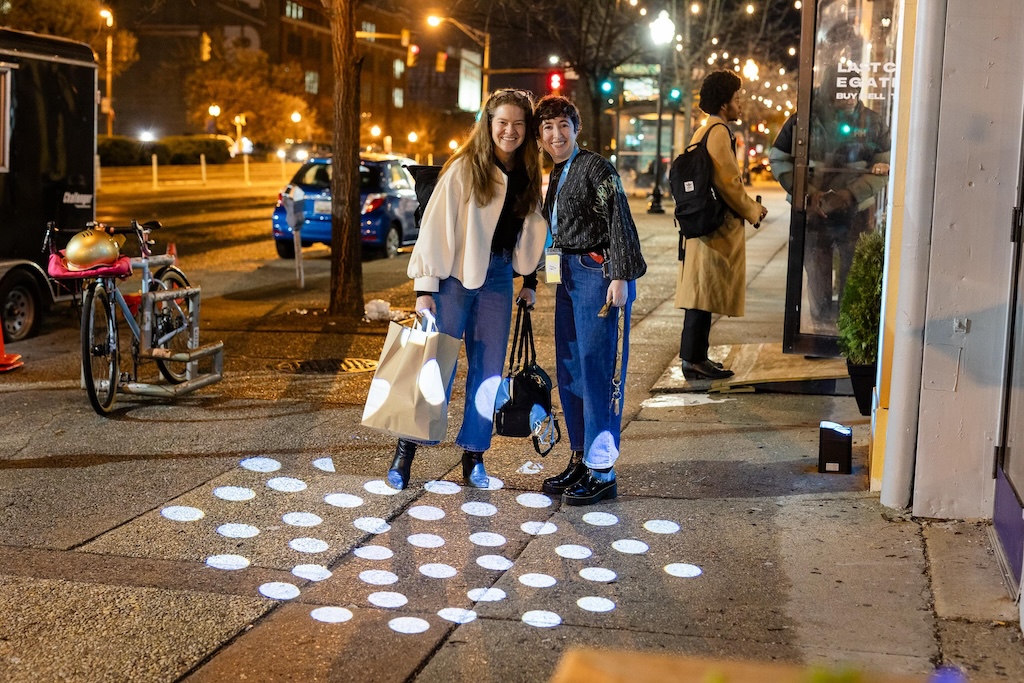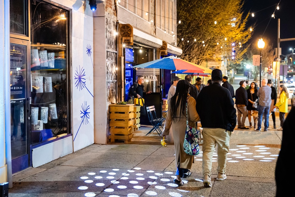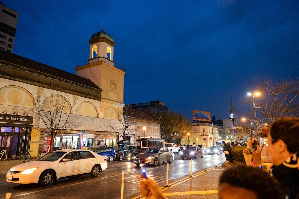 Part of the $1 million Inviting Light initiative that Bloomberg Philanthropies has funded to help revitalize the Station North Arts and Entertainment District, “Third Watch” is the first of five temporary installations that will be unveiled around the arts district over the course of 2025. A lighting ceremony for Charlton’s work at the North Avenue Market, was hosted with big crowds, programming, and performances, with the lights officially going on around 7:45.
