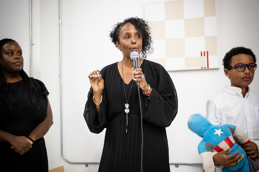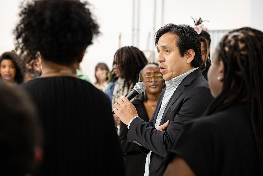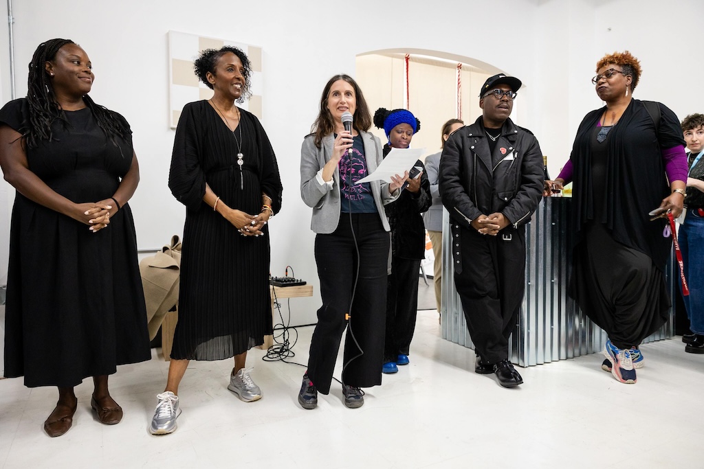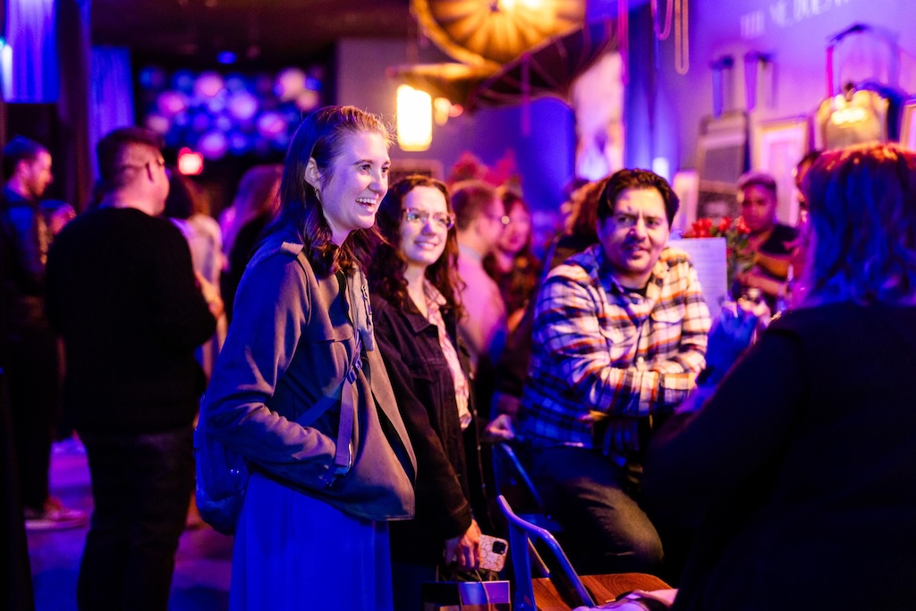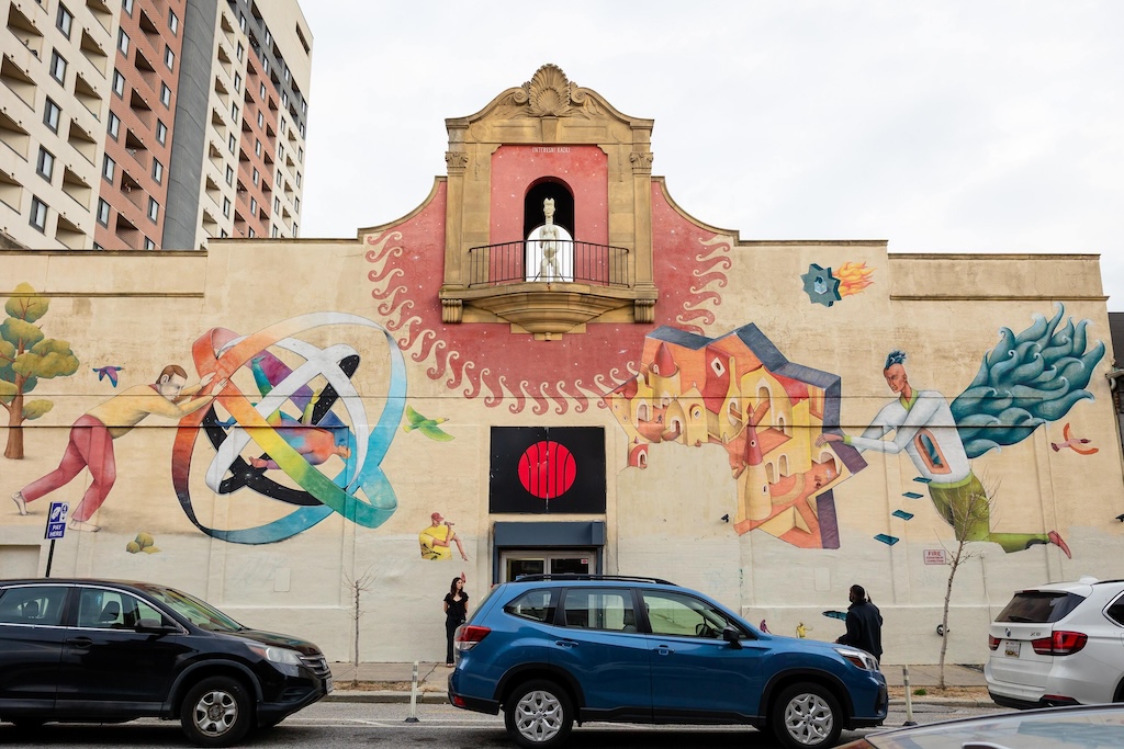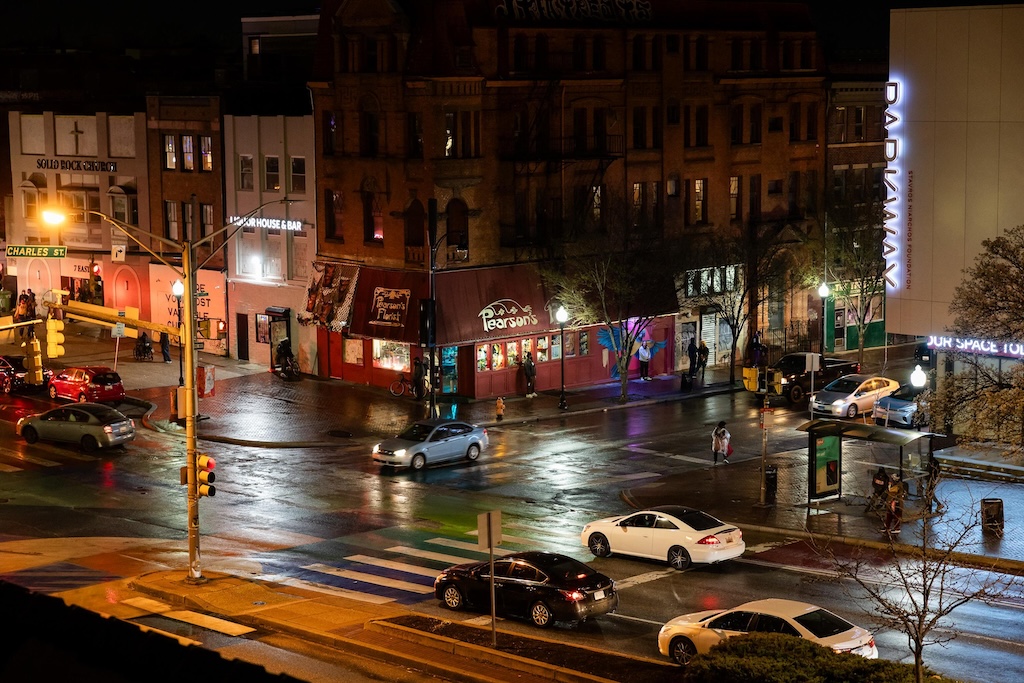 Part of the $1 million Inviting Light initiative that Bloomberg Philanthropies has funded to help revitalize the Station North Arts and Entertainment District, “Third Watch” is the first of five temporary installations that will be unveiled around the arts district over the course of 2025. A lighting ceremony for Charlton’s work at the North Avenue Market, was hosted with big crowds, programming, and performances, with the lights officially going on around 7:45.