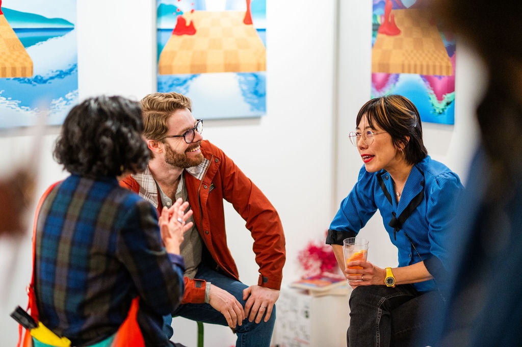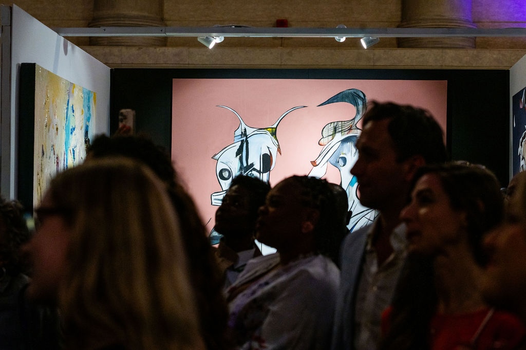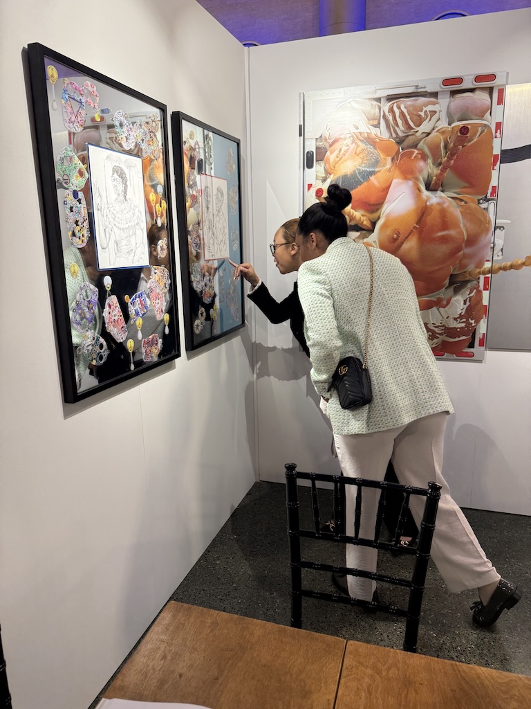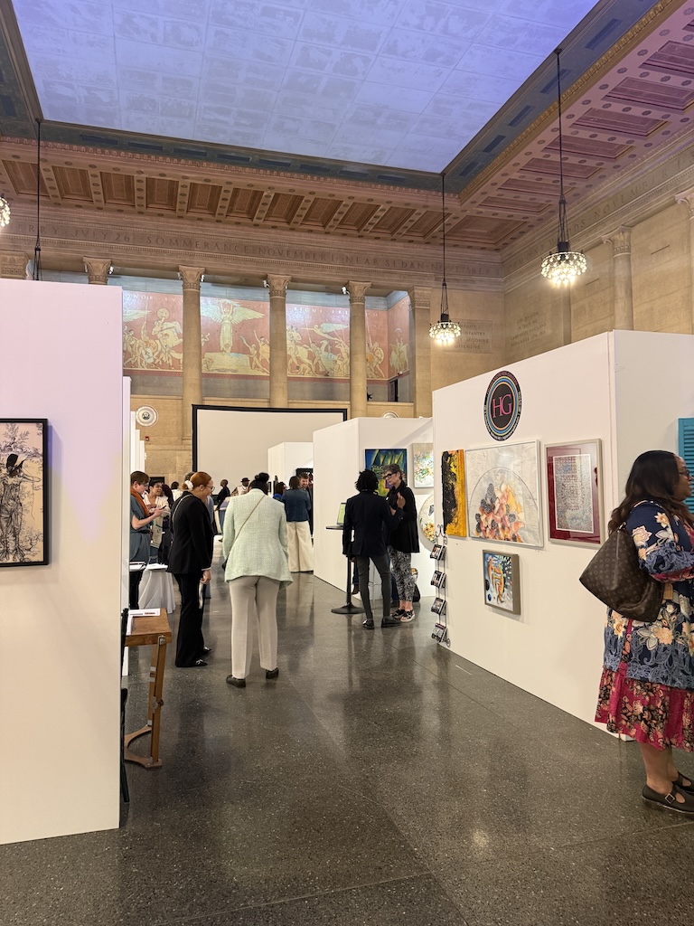 The fair featured 40 Baltimore professional fine artists with a few galleries and nonprofit cultural organizations, each selling art priced between $500 and $5000. On opening night, the fair was filled with an enthusiastic mix of artists, collectors, patrons, and museum professionals. The energy was buzzy and upbeat and we saw a number of people leaving the site with artwork in hand.
