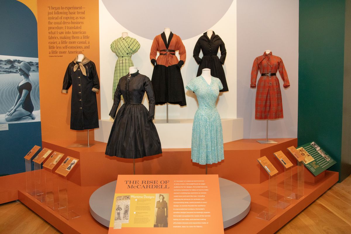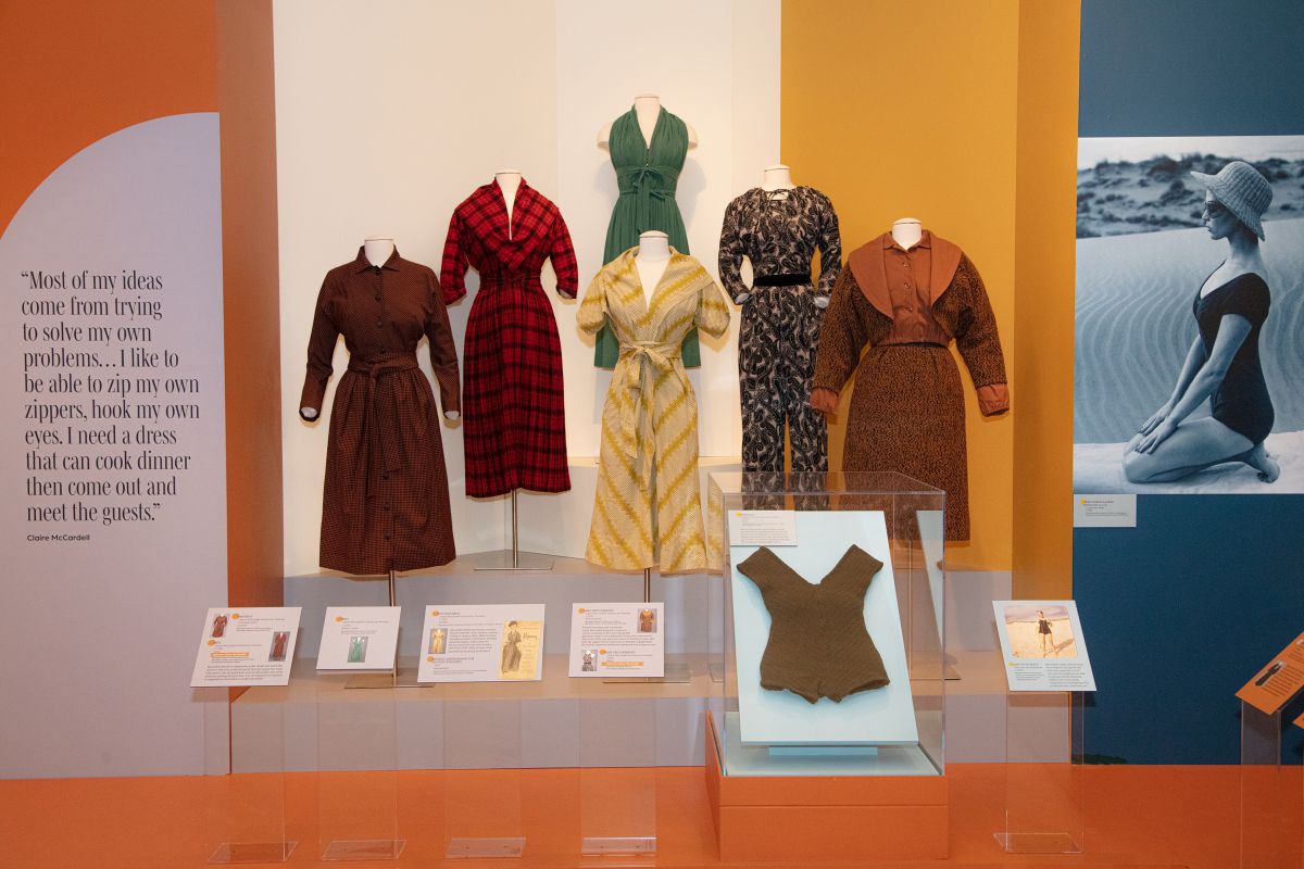 Installation view of Claire McCardell exhibit at Maryland Center for History and Culture