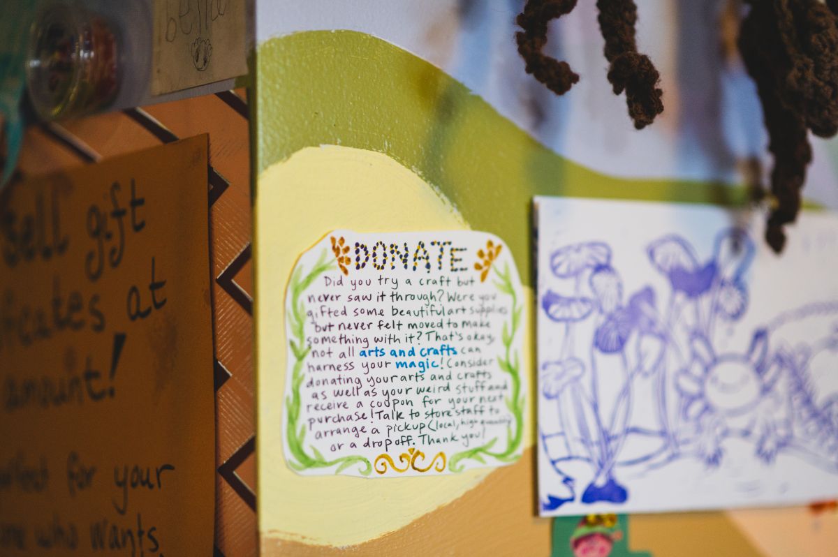 On the website, which is fun and colorful and quirky and reminds me of early-internet homepages, Aunt Hazel’s Whichcraft Project LLC defines itself as a “reuse/recycle/repurpose community craft store and maker space.” In addition to listing hours, events, and membership options, the homepage features the original letter from Aunt Hazel.
