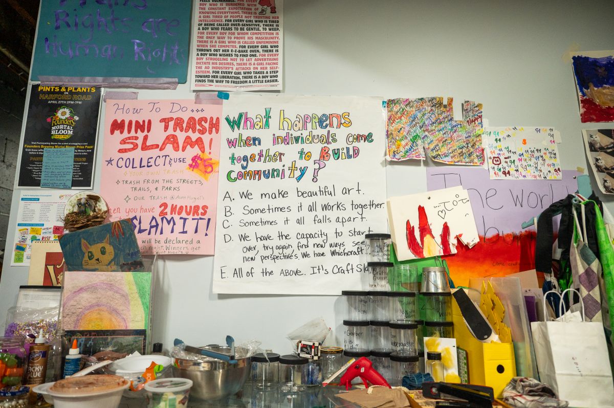 Inspired by Julia Cameron’s The Artist’s Way and her concept of the “artist date,” a weekly outing for one’s inner artist, I was looking for a creative, grounded space free from my phone and the news, somewhere I could craft, work with my hands, meet new people—feel human. My husband, Alex, studying for his PhD exams, was also in need of a creative outlet. I picked him up after I got off work, and we drove to Northeast on a Tuesday evening for what Aunt Hazel’s Instagram said were their “community hours.”