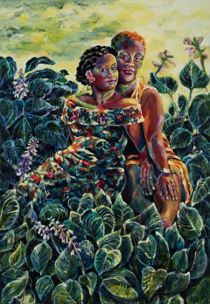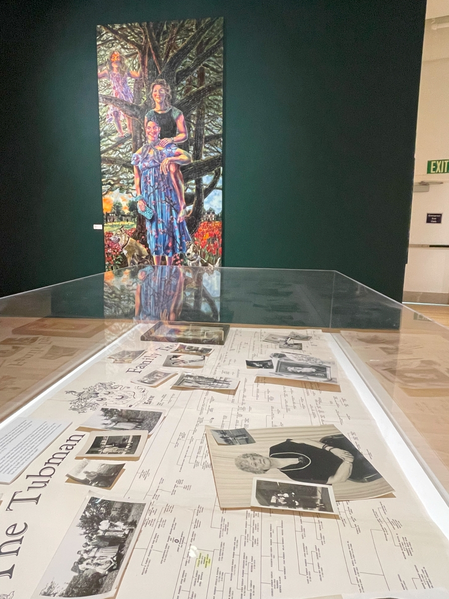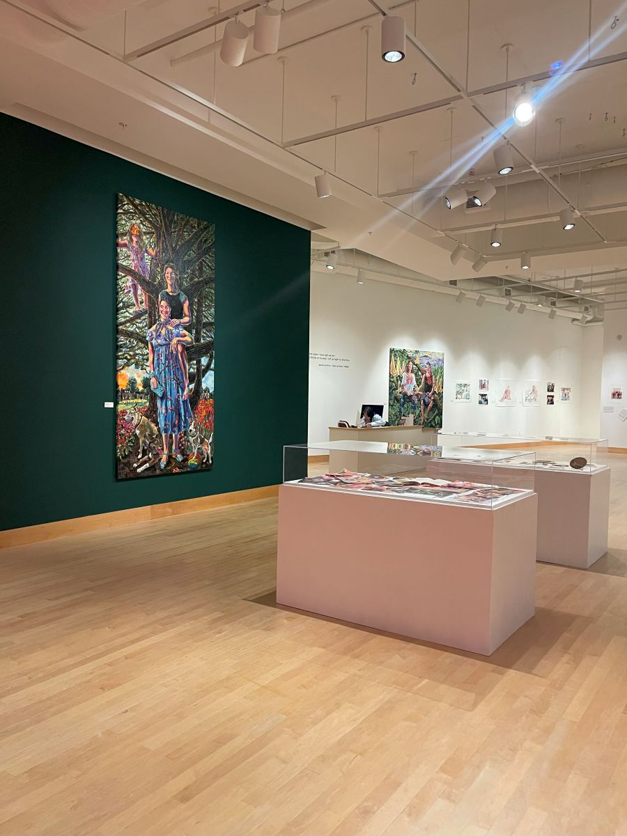 The installation is well thought out. Cox’s paintings are vivid with color and energetic brushwork, yet intimate. There is an area that addresses domestic space and a series of images and documents that extoll the family. The overriding narrative is one of connection—that between the subjects in the paintings and between them and us. This approach emphasizes the longing for love and permanence that Obergefell vs. Hodges legalized.
