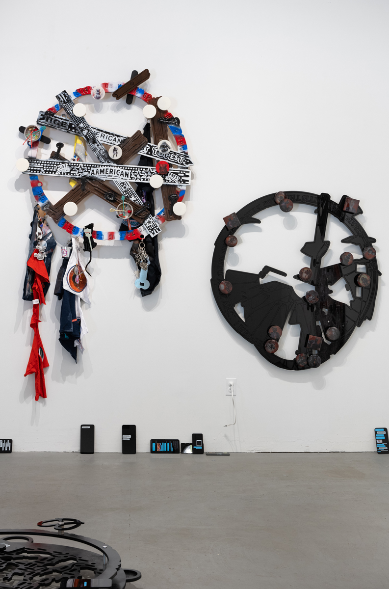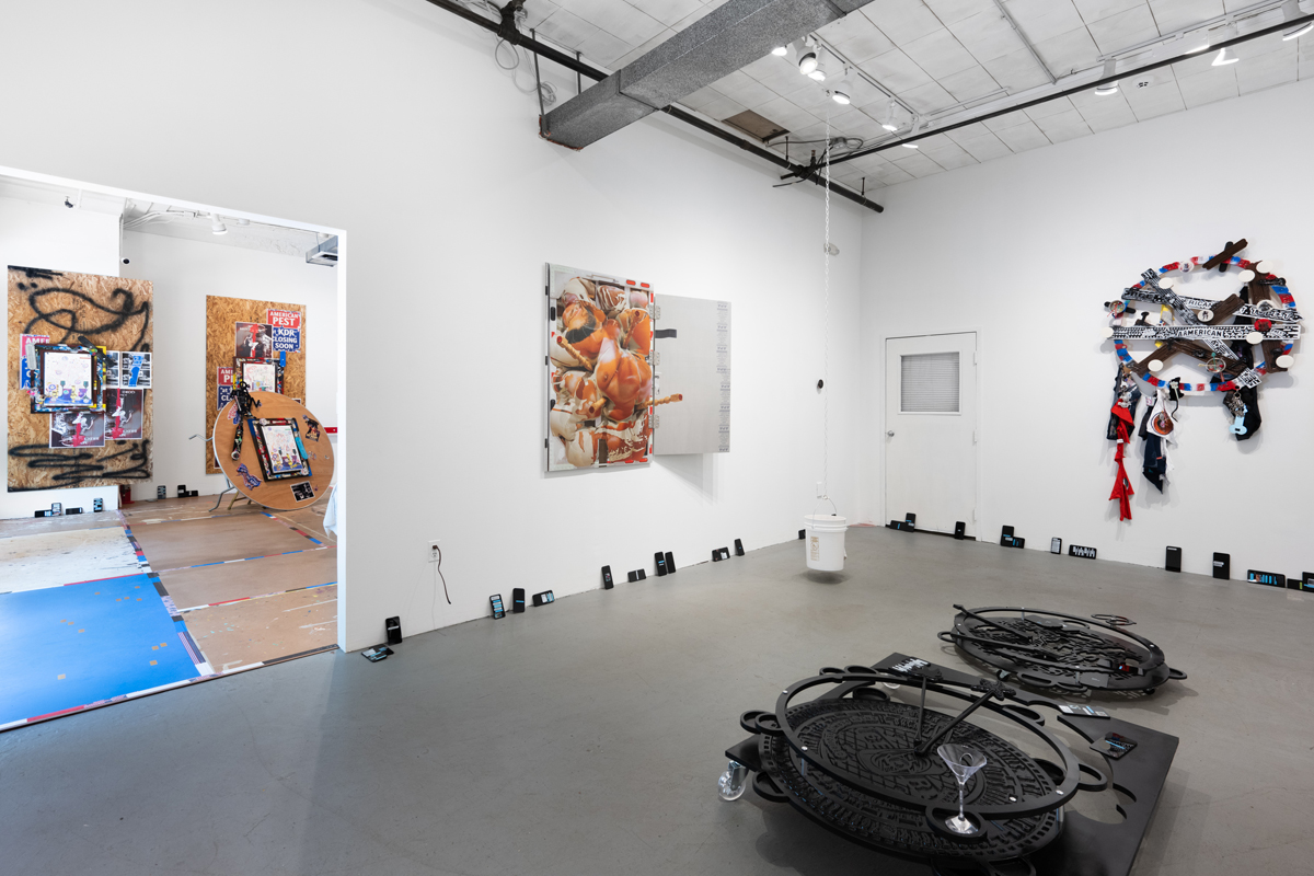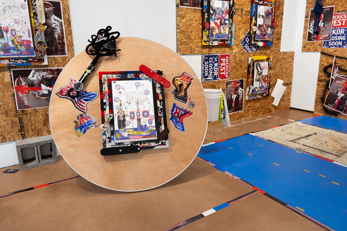 American Pest feels intensely familiar and specific, yet it reflects nothing from my highly partisan social media feeds. It feels like entering into an America that exists, because there are T-shirts and swag and plywood and giant dream-catchers made of resin emblazoned with chains and rats and penises, but I’m seeing it as if under water or on some other plane of reality that I have never visited before.