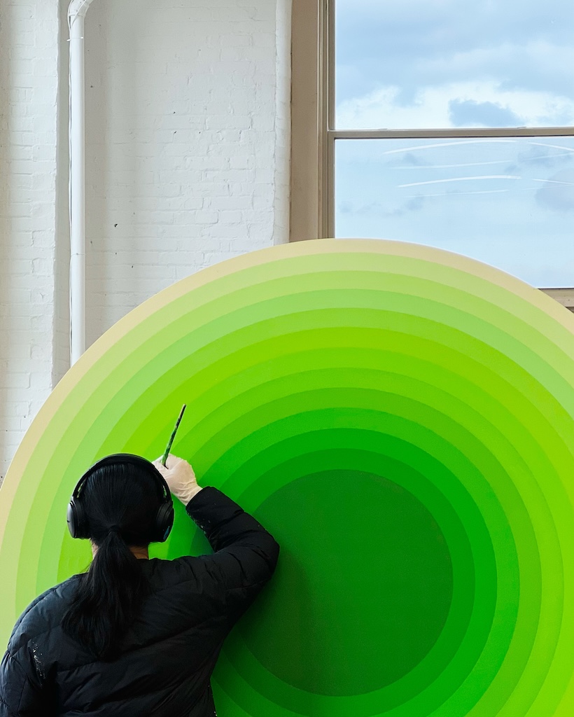 Presently, most days, Lu can be found in her bright, exquisitely well-organized Woodberry studio, immersed in the music in her headphones and in the patient, methodical work of painting another composition. Her monumental series in progress, One Hundred Melodies of Solitude, has now expanded well past its title to comprise more than 260 individual pieces.