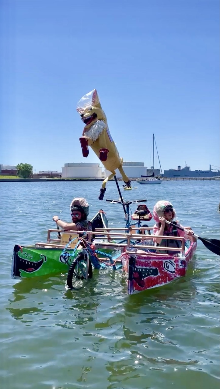 “Everybody was standing around waiting for these identical, beautiful boats to make it to the finish line, but then they saw our crazy teams of trash pushed by people,” Segreti says. “Will it float or won’t it float? Are people going to die in the Inner Harbor? It became really interesting.”