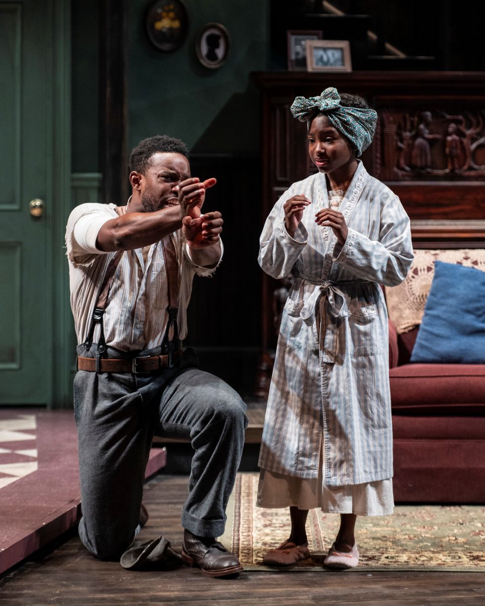 As is to be expected from one of the most preeminent theatres in the city, the ensemble on stage is of the highest quality. Payton Crosier and Mecca Rogers share the role of young Maretha. Rogers performed at the matinee I attended. She was well cast as an 11-year-old little girl, complete with adorable pigtails.