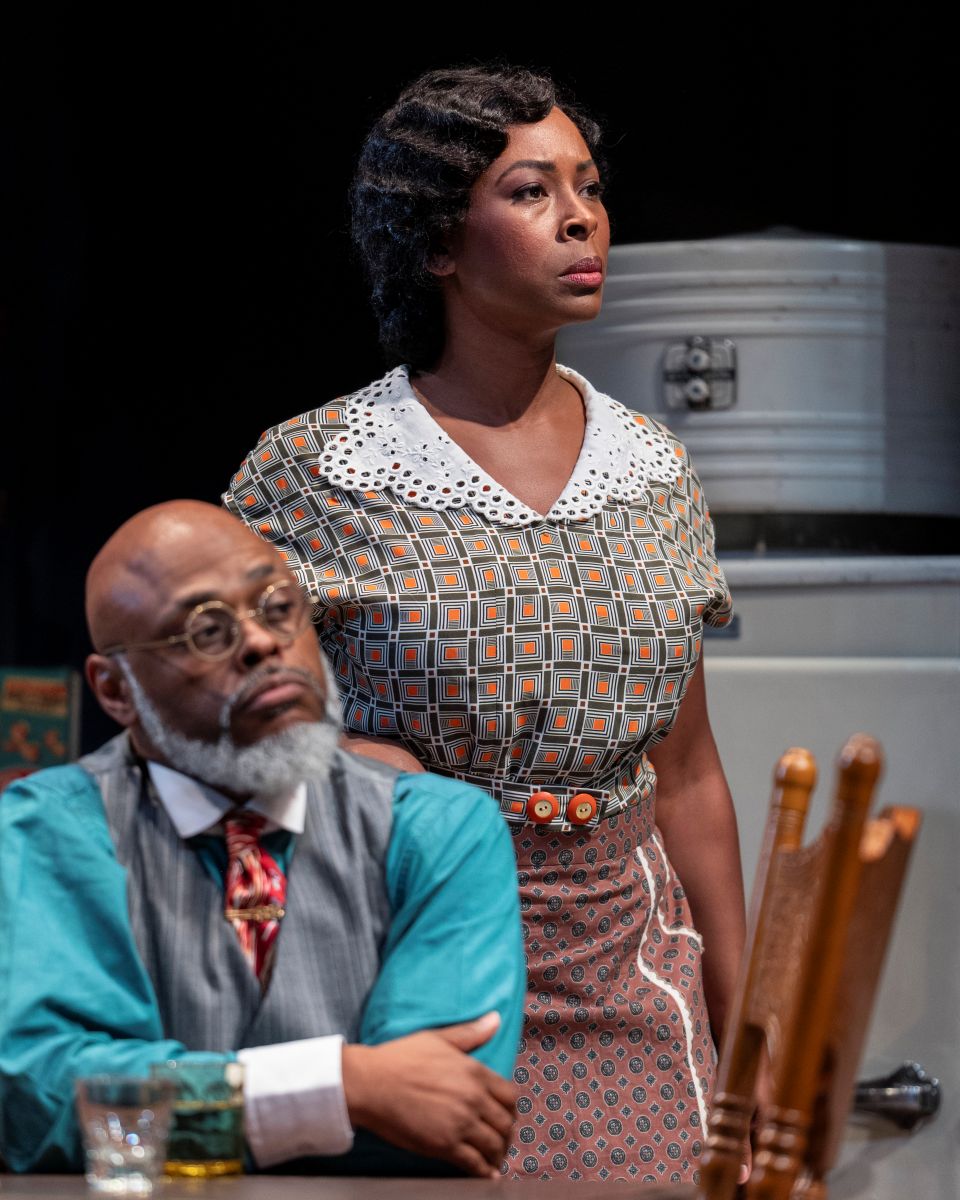 As Mediator-In-Chief of the Charles family, Jefferson A. Russell’s Doaker exudes a quiet authority. Largely trying to stay out of the volatile pathways of his warring niece and nephew, his efforts to quiet the waters anchor much of the action. Likewise, Mack Leamon’s Avery, the preacher and paramour of Berniece, is a focused actor with some serious chops. His facial expressions are kept largely in check—but when he pleads his case to persuade Berniece to marry him, there is a slightly harder and unexpected edge to him that carries the scene. KenYatta Rogers’ piano playing Wining Boy is full of bluster and bravado. His drunken tirade is spot-on in the second act. I’m a fan of Louis E. Davis and the winsome innocence he brings to the part of Lymon is squarely in his wheelhouse.
