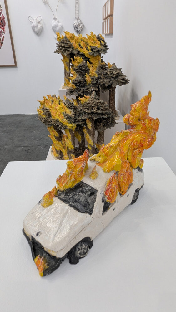 Indeed, “youth” has been the buzzword of the fair. I started to wonder if that fixation might be reflective of pervasive demographic anxieties? This came up when I asked a fair employee if they knew of any galleries from the US, hoping to see some familiar faces from across the pond. She explained that by the time the geographically-curated sections of the fair—highlighting East Asian, Latin American, Iberian, or Nordic galleries—had been booked, there weren’t many booths left in the general section, so they ended up with zero galleries from the US this year. That struck me as surprising, since the United States (representing only about 5% of the human population) historically tends to be over-represented at art fairs.