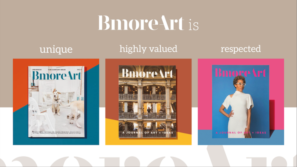 BmoreArt is an online magazine and print journal dedicated to smart, daily discussions of art and culture, both local and global. Our publication’s mission is to build community, publish the highest quality content, document the region’s changing cultural landscape, and provide critical analysis to an engaged local and international audience.
