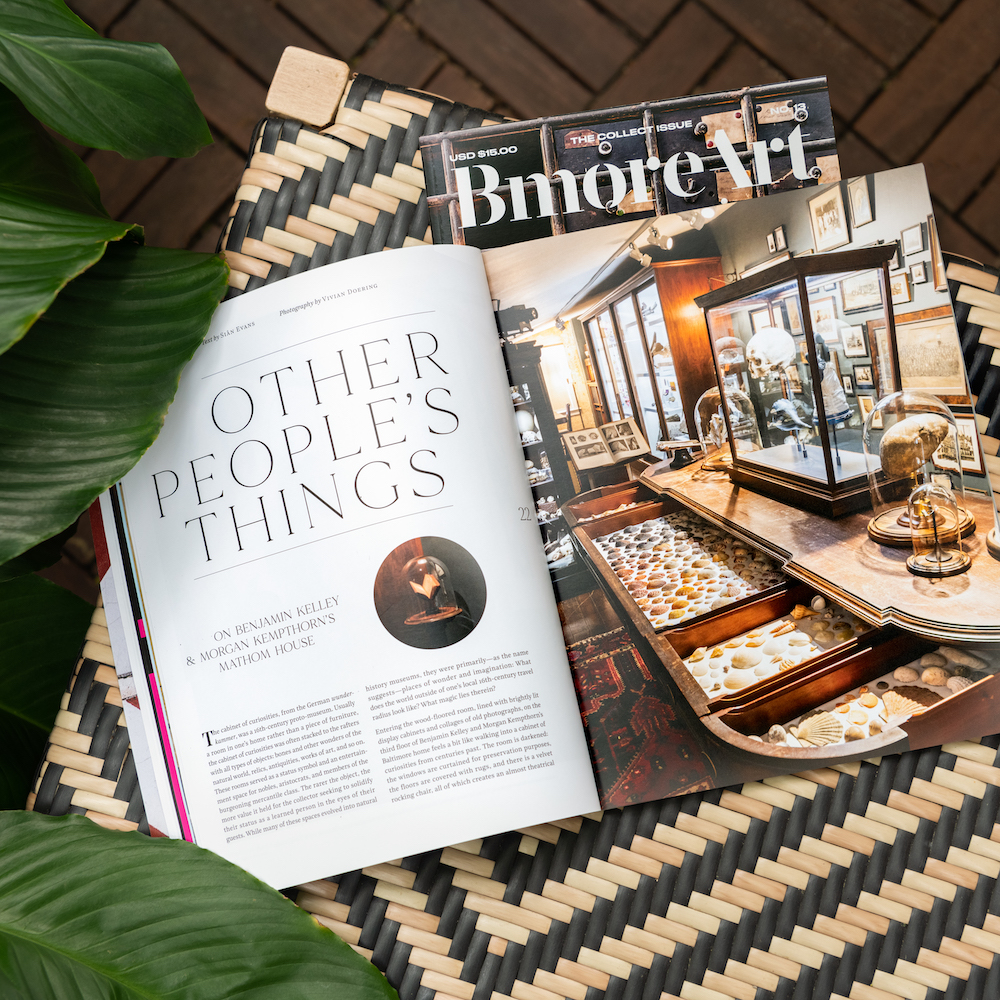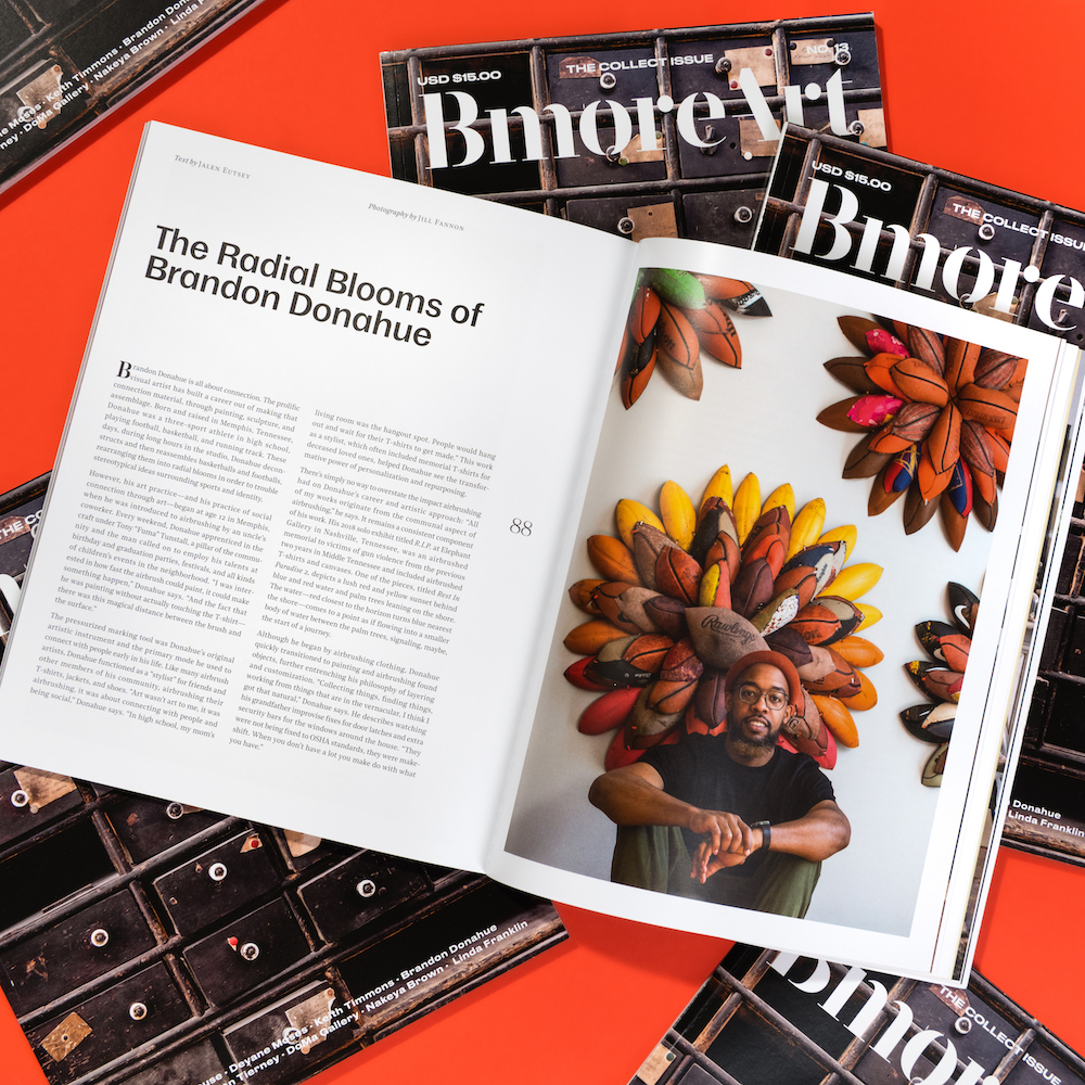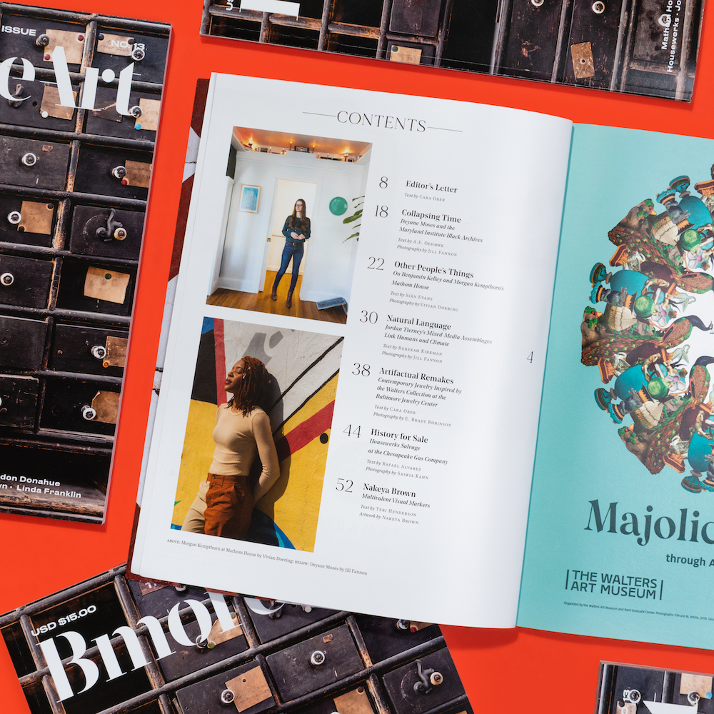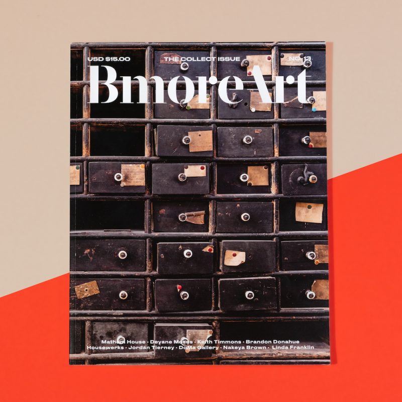 Issue 13 considers the act of collecting as a source of inspiration for artists, a community supporting economic practice, and a method for meaningful engagement in the world. Featured artists include Brandon Donahue, Linda Franklin, Deyane Moses, Jordan Tierney, the Baltimore Jewelry Center, and the DoMa Gallery.