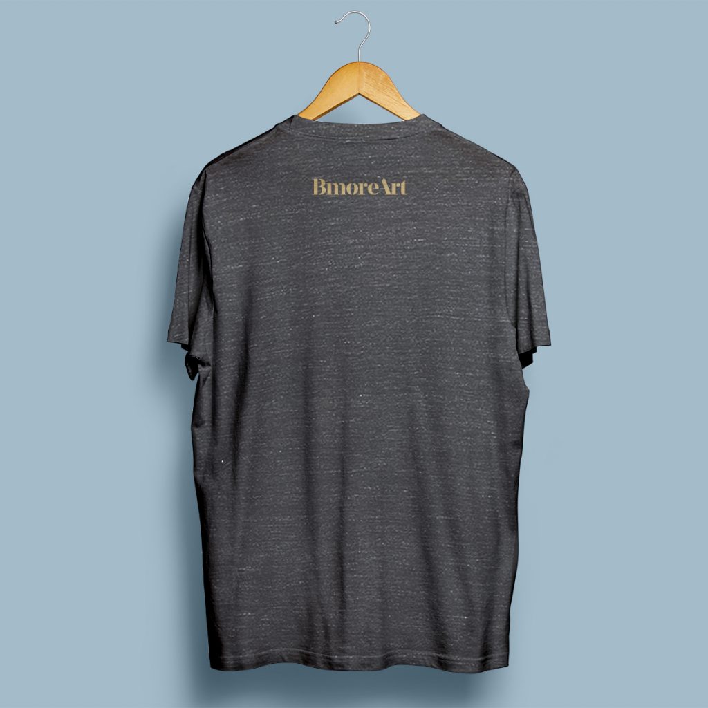 Show your love for BmoreArt and your belief in the importance of Art, Culture, and Conversation, BmoreArt’s official tagline. This is a charcoal black slub T-shirt printed in neon green and gold inks. It is made in the United States by the eco-friendly company Bella+Canvas and printed in Baltimore by Syndicate Screenprint Company.